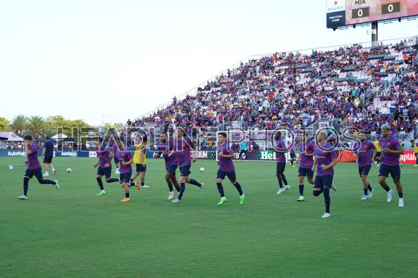Fort Lauderdale, Florida, USA, July 19, 2022, FC Barcelona players warming up at DRV PNK Stadium in a Friendly Match. (Photo Credit: Marty Jean-Louis)