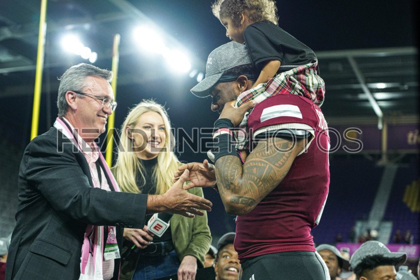 Orlando, Florida, USA, December 16, 2022, Troy Trojans player Devonte Ross #7 receives the MVP trophy after wiining the Duluth Cure Bowl at Exploria Stadium. (Photo Credit: Marty Jean-Louis)