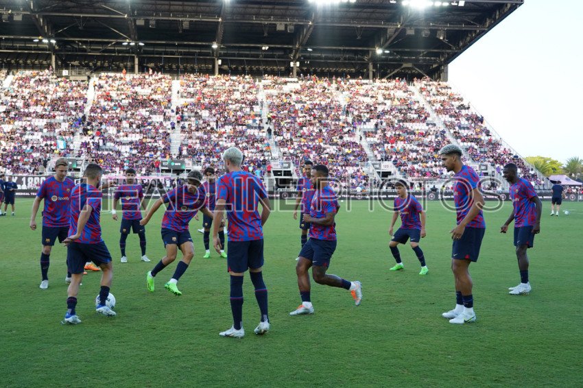 Fort Lauderdale, Florida, USA, July 19, 2022, FC Barcelona players warming up at DRV PNK Stadium in a Friendly Match. (Photo Credit: Marty Jean-Louis)