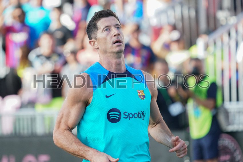 Fort Lauderdale, Florida, USA, July 19, 2022, FC Barcelona player Robert Lewandowski trains before match at DRV PNK Stadium in a Friendly Match. (Photo Credit: Marty Jean-Louis)