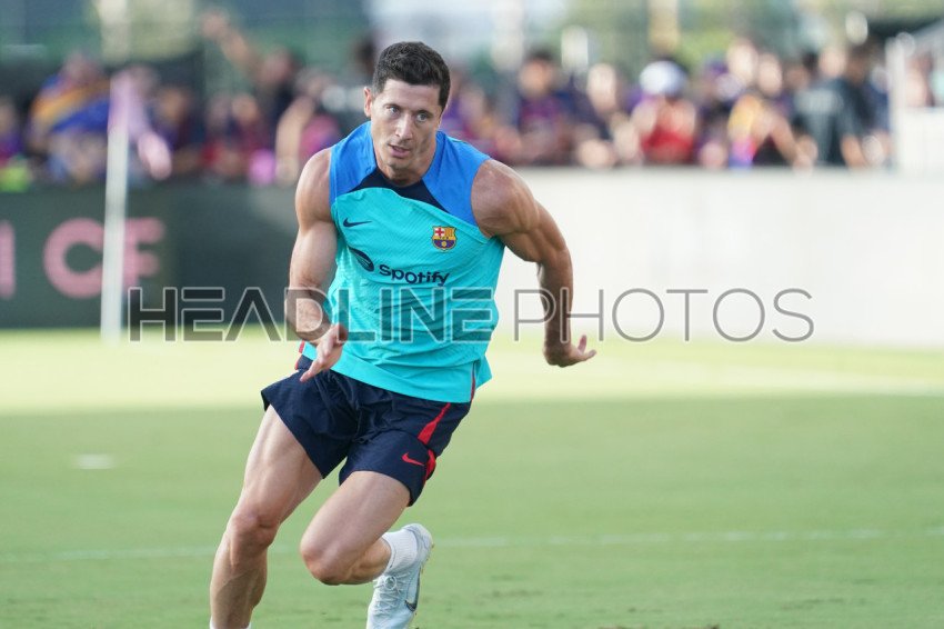 Fort Lauderdale, Florida, USA, July 19, 2022, FC Barcelona player Robert Lewandowski trains before match at DRV PNK Stadium in a Friendly Match. (Photo Credit: Marty Jean-Louis)