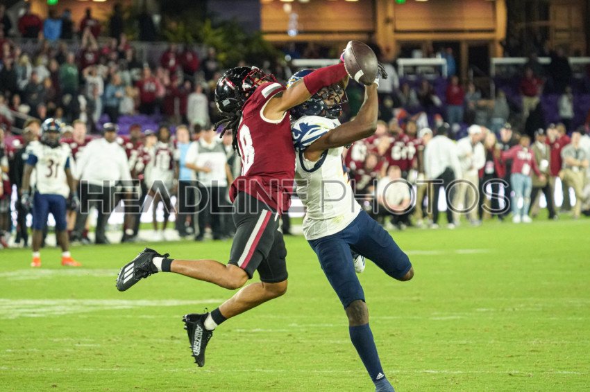 Orlando, Florida, USA, December 16, 2022, Troy Trojans player Reddy STeward #18 blocks a touchdown attempt in the final minutes of the game at Exploria Stadium. (Photo Credit: Marty Jean-Louis)