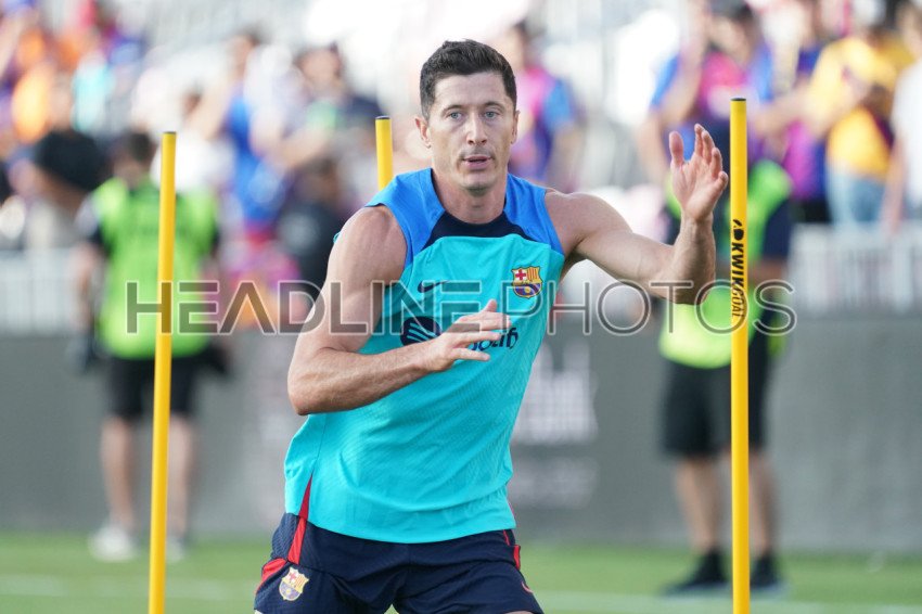 Fort Lauderdale, Florida, USA, July 19, 2022, FC Barcelona player Robert Lewandowski trains before match at DRV PNK Stadium in a Friendly Match. (Photo Credit: Marty Jean-Louis)