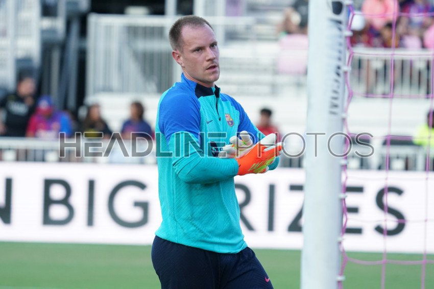 Fort Lauderdale, Florida, USA, July 19, 2022, FC Barcelona Goalkeeper Marc-André ter Stegen #1 warming up at DRV PNK Stadium in a Friendly Match. (Photo Credit: Marty Jean-Louis)