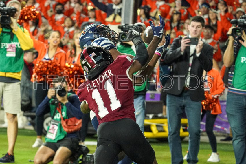 Orlando, Florida, USA, December 16, 2022, Troy Trojans O'Shai Fletcher #11 blocks the ball during the second half at Exploria Stadium. (Photo Credit: Marty Jean-Louis)