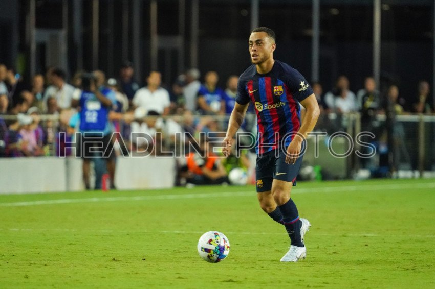 Fort Lauderdale, Florida, USA, July 19, 2022, FC Barcelona defender Sergino Dest #2 looks to make a pass at DRV PNK Stadium in a Friendly Match. (Photo Credit: Marty Jean-Louis)