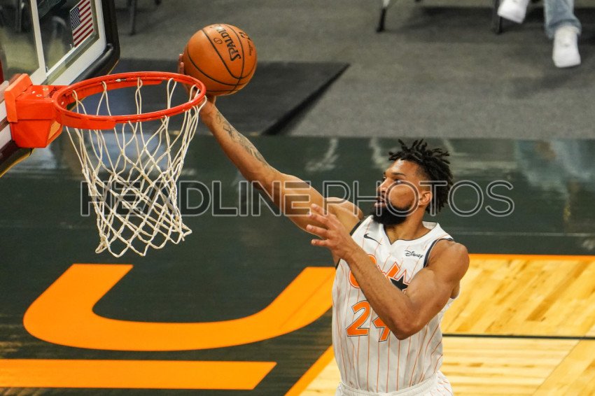 Orlando, Florida, USA, March 23, 2021, Orlando Magic player Khem Birch #24 makes a layup during the game against the Denver Nuggets at the Amway Center (Photo Credit: Marty Jean-Louis)