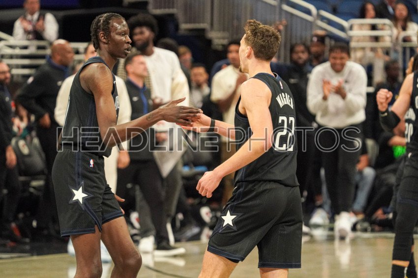 Orlando, Florida, USA, December 14, 2022, Orlando Magic players Bol Bol #10 (left) and Franz Wagner #22 celebrates during the first half at the Amway Center. (Photo Credit: Marty Jean-Louis)