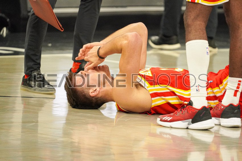 Orlando, Florida, USA, December 14, 2022, Atlanta Hawks guard Bogdan Bogdanovic #13 is on the floor after an incident in the first half at the Amway Center. (Photo Credit: Marty Jean-Louis)