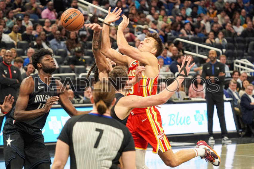 Orlando, Florida, USA, December 14, 2022, Atlanta Hawks guard Bogdan Bogdanovic #13 gets fouled in the first half at the Amway Center. (Photo Credit: Marty Jean-Louis)