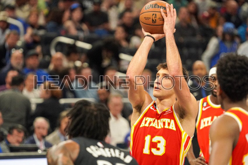 Orlando, Florida, USA, December 14, 2022, Atlanta Hawks guard Bogdan Bogdanovic #13 shoots a free throw in the first half at the Amway Center. (Photo Credit: Marty Jean-Louis)