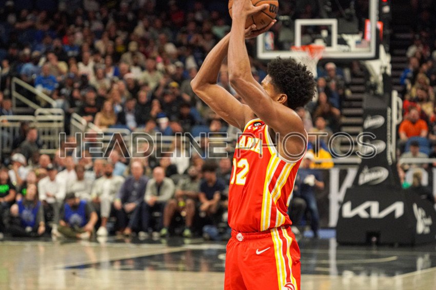 Orlando, Florida, USA, December 14, 2022, Atlanta Hawks forward De'Andre Hunter #12 shoots a three in the first half at the Amway Center. (Photo Credit: Marty Jean-Louis)