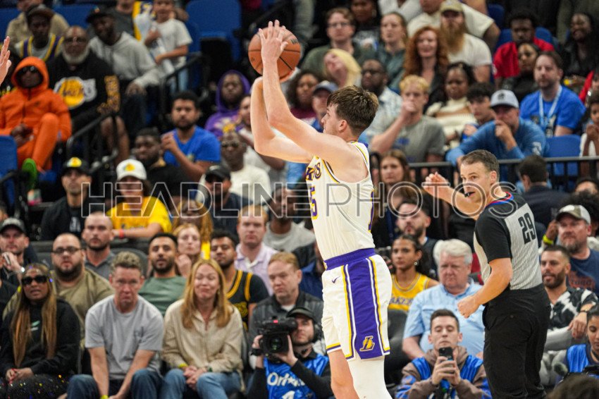 Orlando, Florida, USA, November 4, 2023, Los Angeles Lakers guard Austin Reaves #15 shoots a three at the Amway Center. (Photo Credit: Marty Jean-Louis)