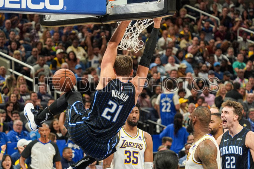 Orlando, Florida, USA, November 4, 2023, Orlando Magic player Moritz Wagner #21 makes a dunk at the Amway Center. (Photo Credit: Marty Jean-Louis)