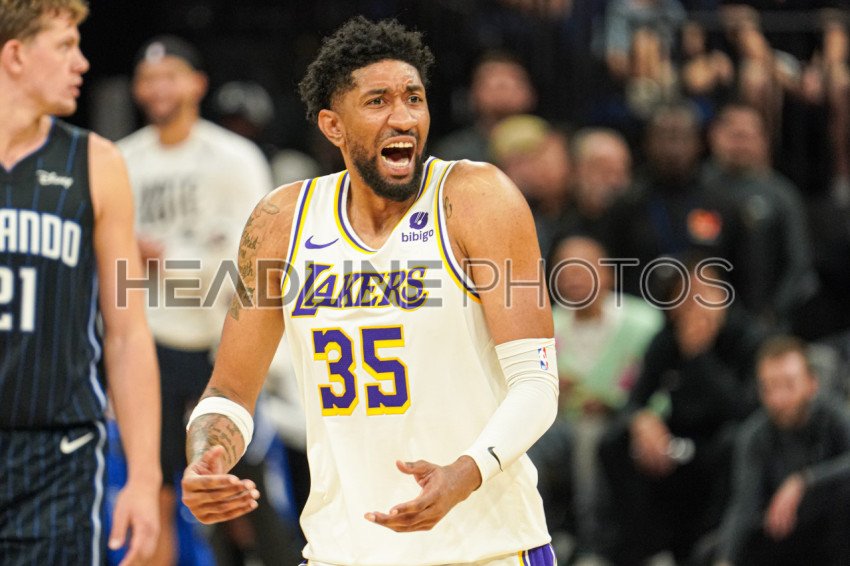 Orlando, Florida, USA, November 4, 2023, Los Angeles Lakers player Christian Wood #35 reacts after a foul call at the Amway Center. (Photo Credit: Marty Jean-Louis)