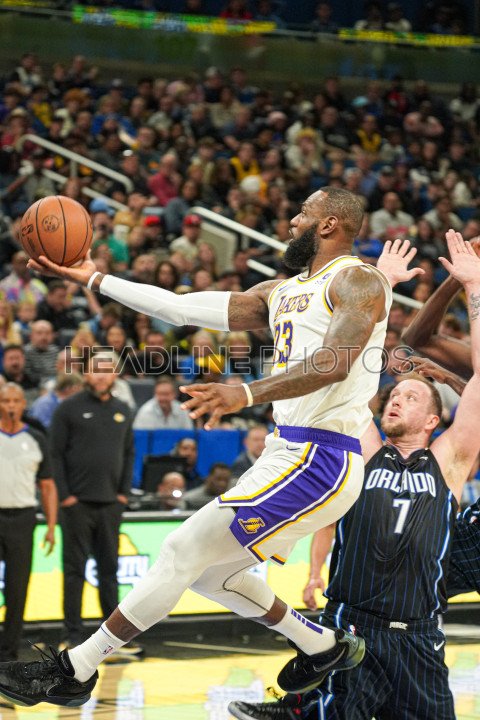Orlando, Florida, USA, November 4, 2023, Los Angeles Lakers player Lebron James #23 attempt to score in the first half at the Amway Center. (Photo Credit: Marty Jean-Louis)