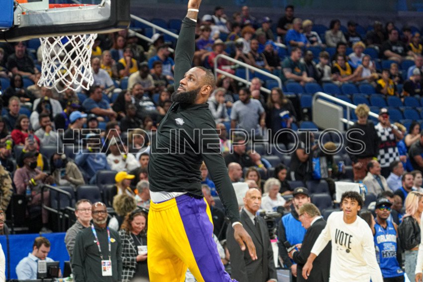 Orlando, Florida, USA, November 4, 2023, Los Angeles Lakers foward Lebron James #23 makes a dunk during warmup at the Amway Center. (Photo Credit: Marty Jean-Louis)
