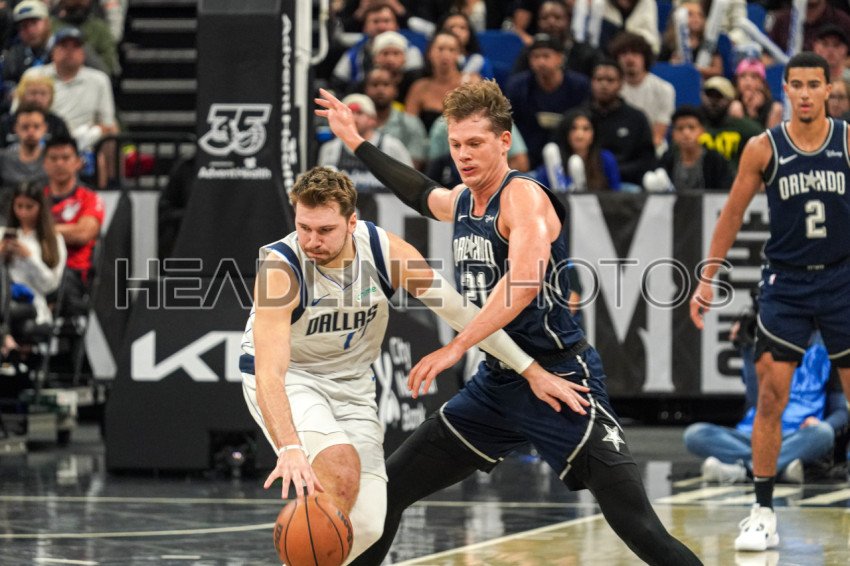 Orlando, Florida, USA, November 6, 2023, Dallas Mavericks guard Luka Doncic #77 fight to keep the ball as Moritz Wagner gives pressure at the Amway Center. (Photo Credit: Marty Jean-Louis)