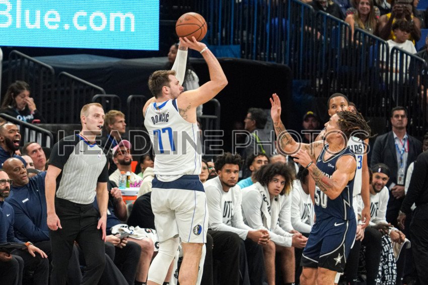 Orlando, Florida, USA, November 6, 2023, Dallas Mavericks guard Luka Doncic #77 shoots a three at the Amway Center. (Photo Credit: Marty Jean-Louis)