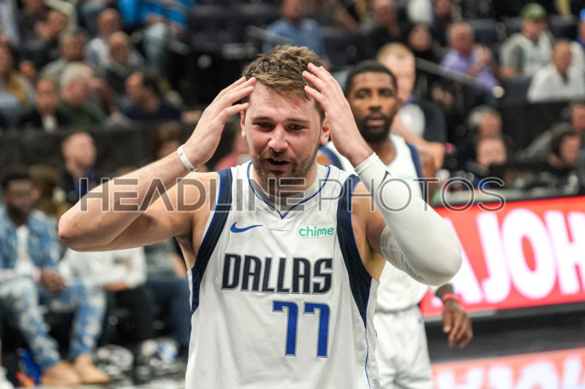Orlando, Florida, USA, November 6, 2023, Dallas Mavericks player Luka Doncic #77 puts his hand over his head after a foul was called at the Amway Center. (Photo Credit: Marty Jean-Louis)