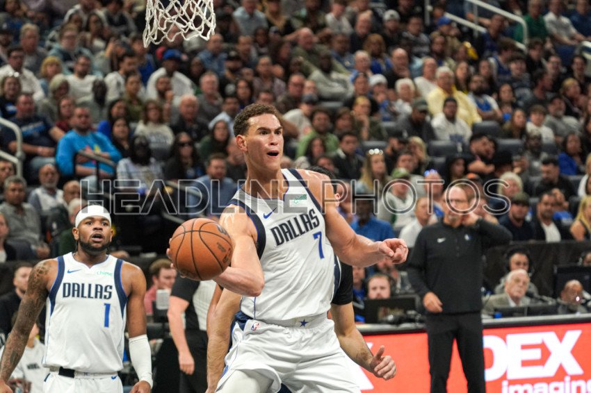 Orlando, Florida, USA, November 6, 2023, Dallas Mavericks player Dwight Powell #7 makes a pass at the Amway Center. (Photo Credit: Marty Jean-Louis)