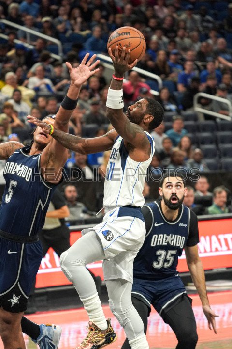 Orlando, Florida, USA, November 6, 2023, Dallas Mavericks guard Kyrie Irving #11 attempt to score during the first half at the Amway Center. (Photo Credit: Marty Jean-Louis)