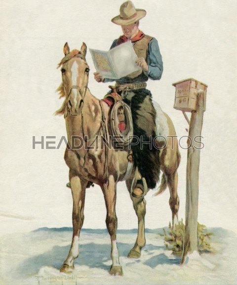 Cowboy Reading Mail Illustration