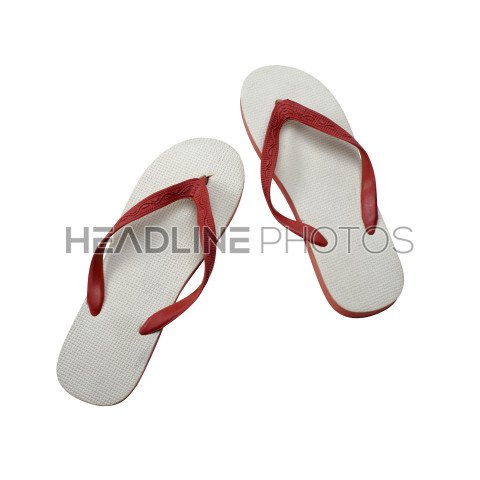 Pair of flip flops on white background