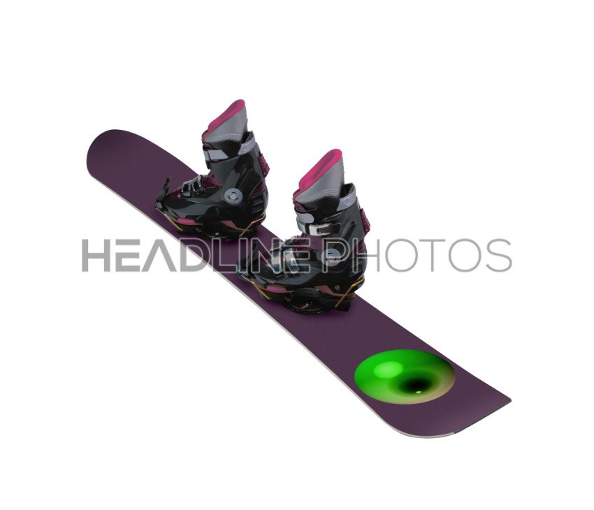 Snowboard and Boots on White Background.