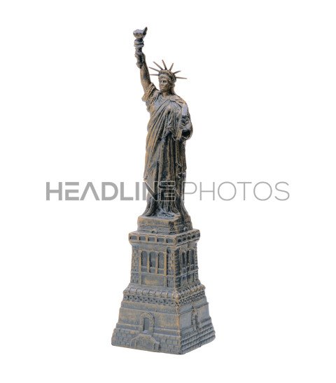Miniature of the Statue of Liberty for souvenir on white background