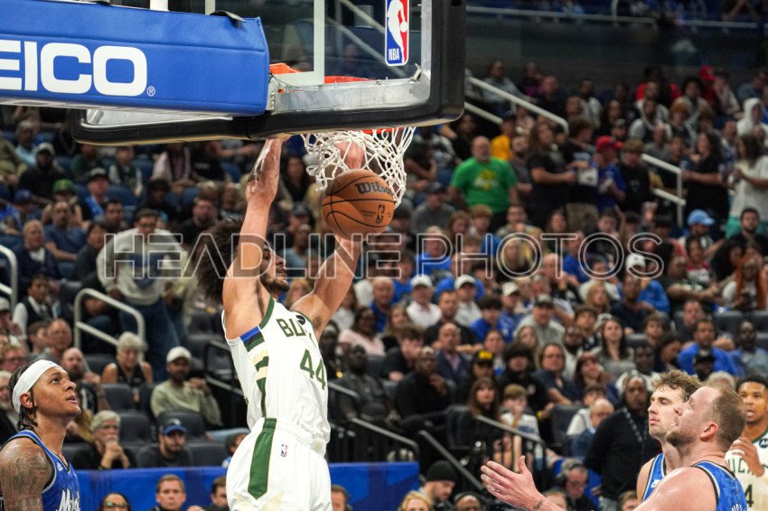Orlando, Florida, USA, November 11, 2023, Milwaukee Bucks player Andre Jackson #44 makes a dunk in the second half at the Amway Center. (Photo Credit: Marty Jean-Louis)