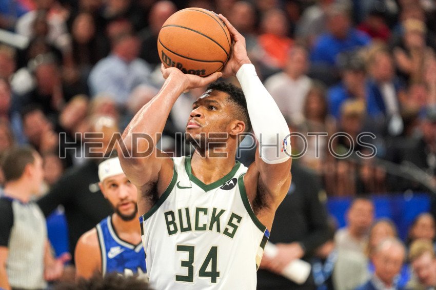 Orlando, Florida, USA, November 11, 2023, Milwaukee Bucks forward Giannis Antetokounmpo #34 shoots a free throw during the second half at the Amway Center. (Photo Credit: Marty Jean-Louis)