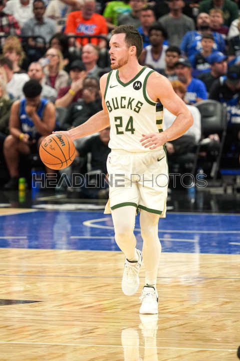 Orlando, Florida, USA, November 11, 2023, Milwaukee Bucks guard Pat Connaughton #24 pushes forward during the second half at the Amway Center. (Photo Credit: Marty Jean-Louis)