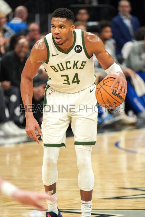Orlando, Florida, USA, November 11, 2023, Milwaukee Bucks forward Giannis Antetokounmpo #34 pushes forward during the second half at the Amway Center. (Photo Credit: Marty Jean-Louis)