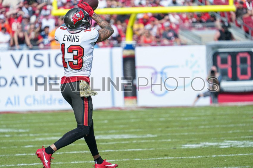 Tampa Bay, Florida, USA, November 12, 2023, Tampa Bay Buccaneers player Mike Evans #13 receives a pass at Raymond James Stadium. (Photo Credit: Marty Jean-Louis)