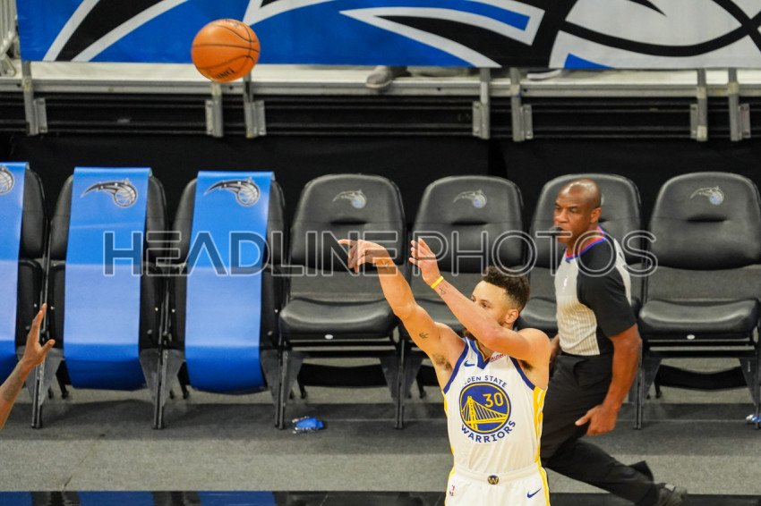 Orlando, Florida, USA, February 19, 2021, Golden State Warriors player Steph Curry #30 shoots a three point during the game against the Orlando Magic at the Amway Center (Photo Credit: Marty Jean-Louis)