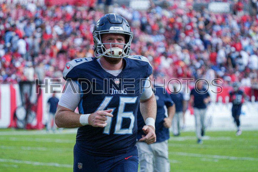 Tampa Bay, Florida, USA, November 12, 2023, Tennessee Titans player Morgan Cox #46 at Raymond James Stadium. (Photo Credit: Marty Jean-Louis)