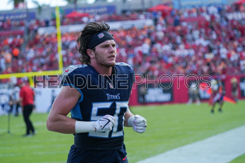 Tampa Bay, Florida, USA, November 12, 2023, Tennessee Titans player Jack Gibbens #50 at Raymond James Stadium. (Photo Credit: Marty Jean-Louis)
