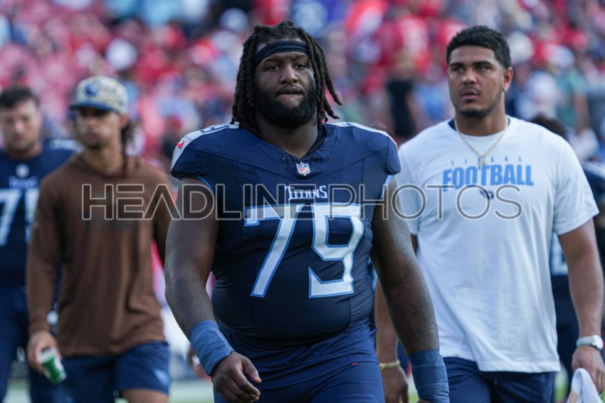 Tampa Bay, Florida, USA, November 12, 2023, Tennessee Titans players Jaelyn Duncan #79 at Raymond James Stadium. (Photo Credit: Marty Jean-Louis)