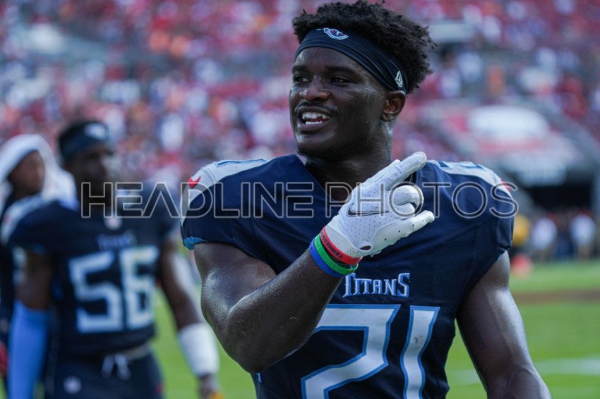 Tampa Bay, Florida, USA, November 12, 2023, Tennessee Titans player Roger McCreary #21 at Raymond James Stadium. (Photo Credit: Marty Jean-Louis)