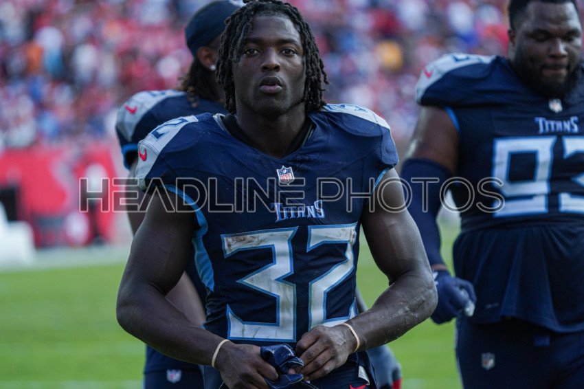 Tampa Bay, Florida, USA, November 12, 2023, Tennessee Titans player Tyjae Spears #32 at Raymond James Stadium. (Photo Credit: Marty Jean-Louis)