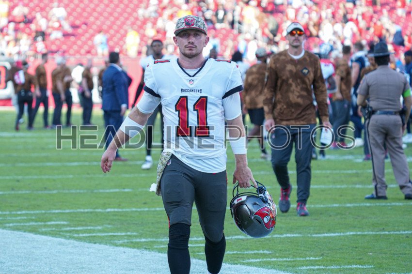 Tampa Bay, Florida, USA, November 12, 2023, Tampa Bay Buccaneers player John Wolford #11 at Raymond James Stadium. (Photo Credit: Marty Jean-Louis)