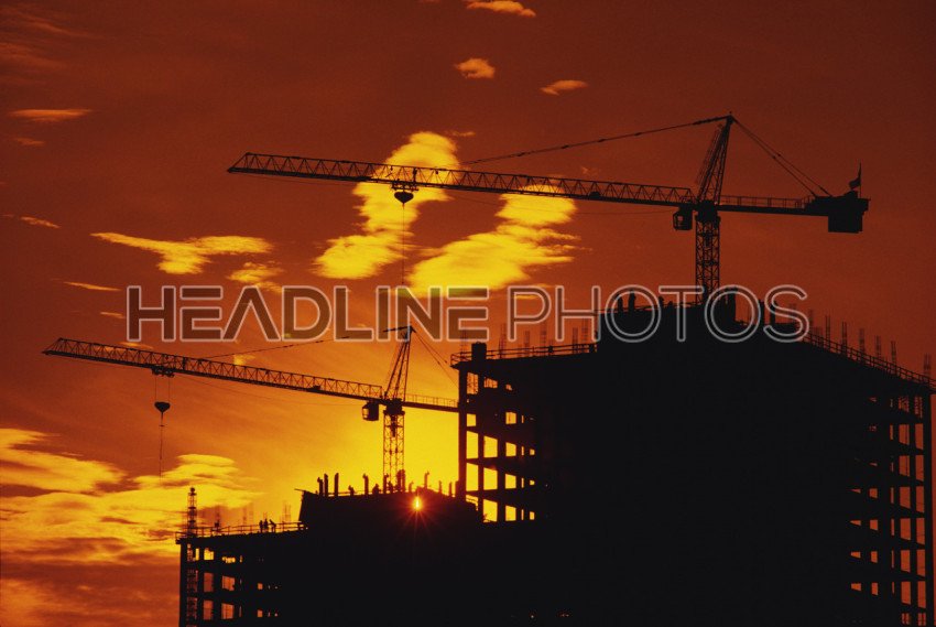 construction industry construction site crane machinery building activity building exterior sunset skyscraper built structure sunrise dawn in silhouette scaffolding sun construction frame citySimilar Photos