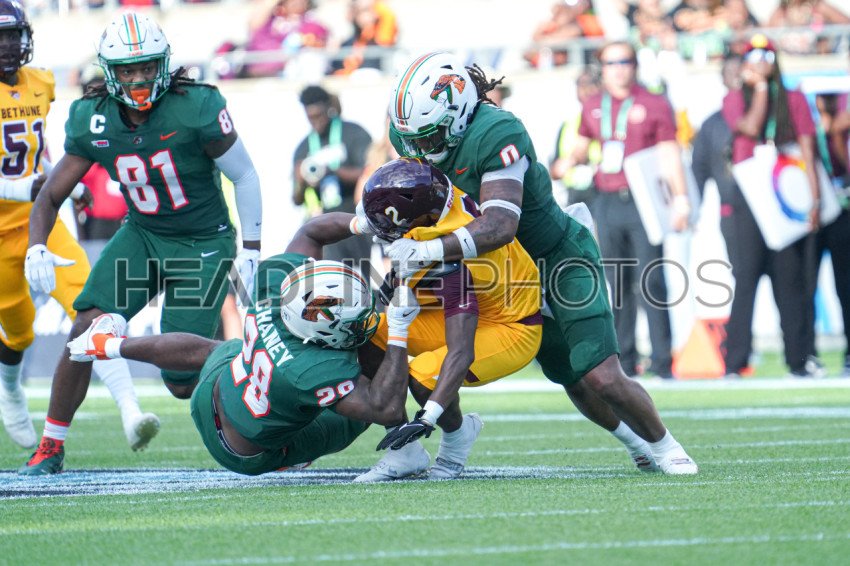 Orlando, Florida, USA, November 18, 2023, FBethune-Cookman player Jamari Gassett #2 gets tackled during the Florida Classics at Camping World Stadium. (Photo Credit: Marty Jean-Louis)