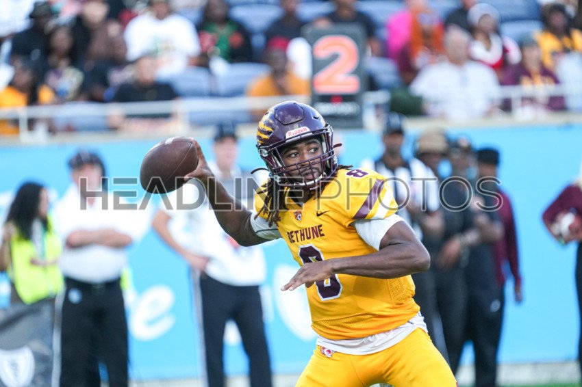 Orlando, Florida, USA, November 18, 2023, Bethune-Cookman quarterback Walter Simmons III #8 look to make a pass during the Florida Classics at Camping World Stadium. (Photo Credit: Marty Jean-Louis)