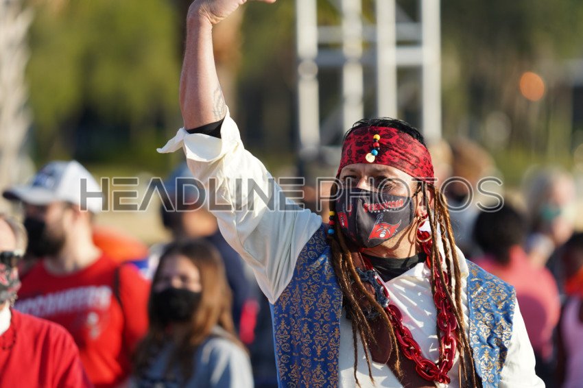 Tampa, Florida, USA, February 4, 2021, Football Fans dressed as a pirate at the Super Bowl Experience (Photo Credit: Marty Jean-Louis)