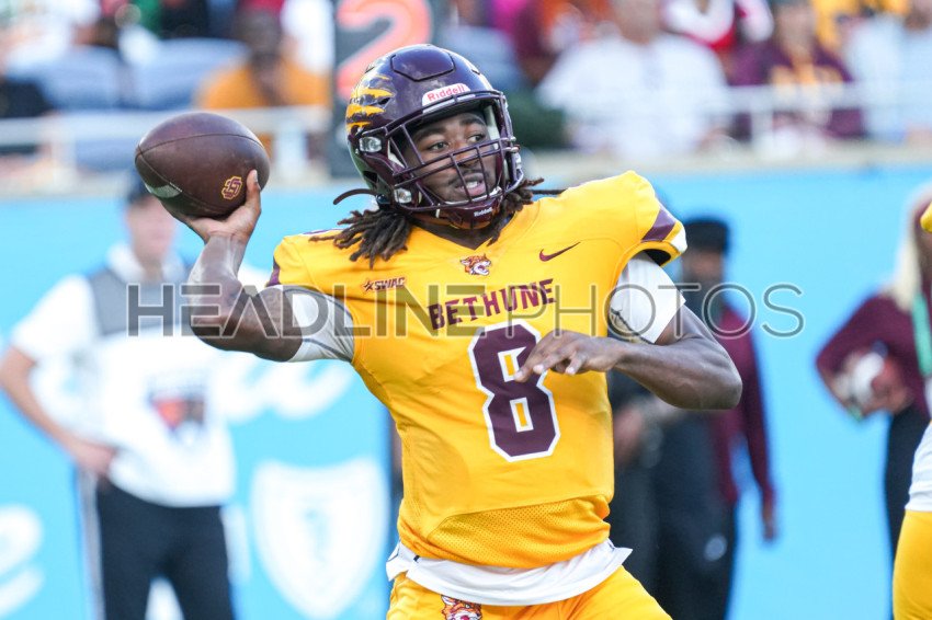 Orlando, Florida, USA, November 18, 2023, Bethune-Cookman quarterback Walter Simmons III #8 look to make a pass during the Florida Classics at Camping World Stadium. (Photo Credit: Marty Jean-Louis)