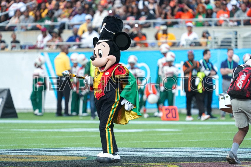 Orlando, Florida, USA, November 18, 2023, Disney's Mickey Mouse performs during the half time game between Florida A&M and Bethune-Cookman during the Florida Classics at Camping World Stadium. (Photo Credit: Marty Jean-Louis)