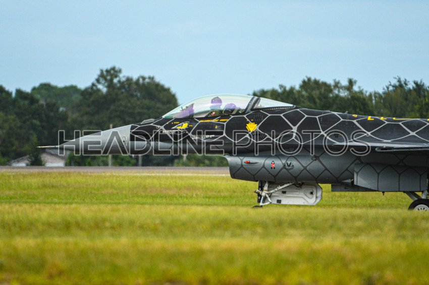 An F-16 Viper lands during the Lockheed Martin Space and Air Show on Sunday November 1, 2020 at the Orlando Sanford Airport in Sanford Florida. Photo Credit: Marty Jean-Louis