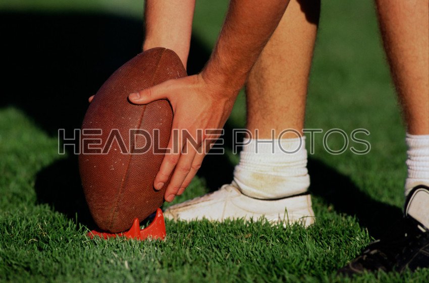 Gridiron ball standing on a tee